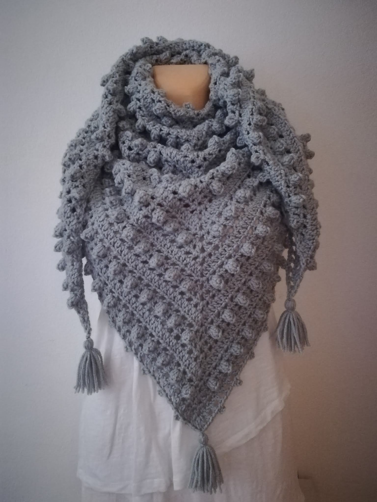 The pattern is made for a scarf approx. 160cm (64’) wide and 70cm (28’) high - without tassels.